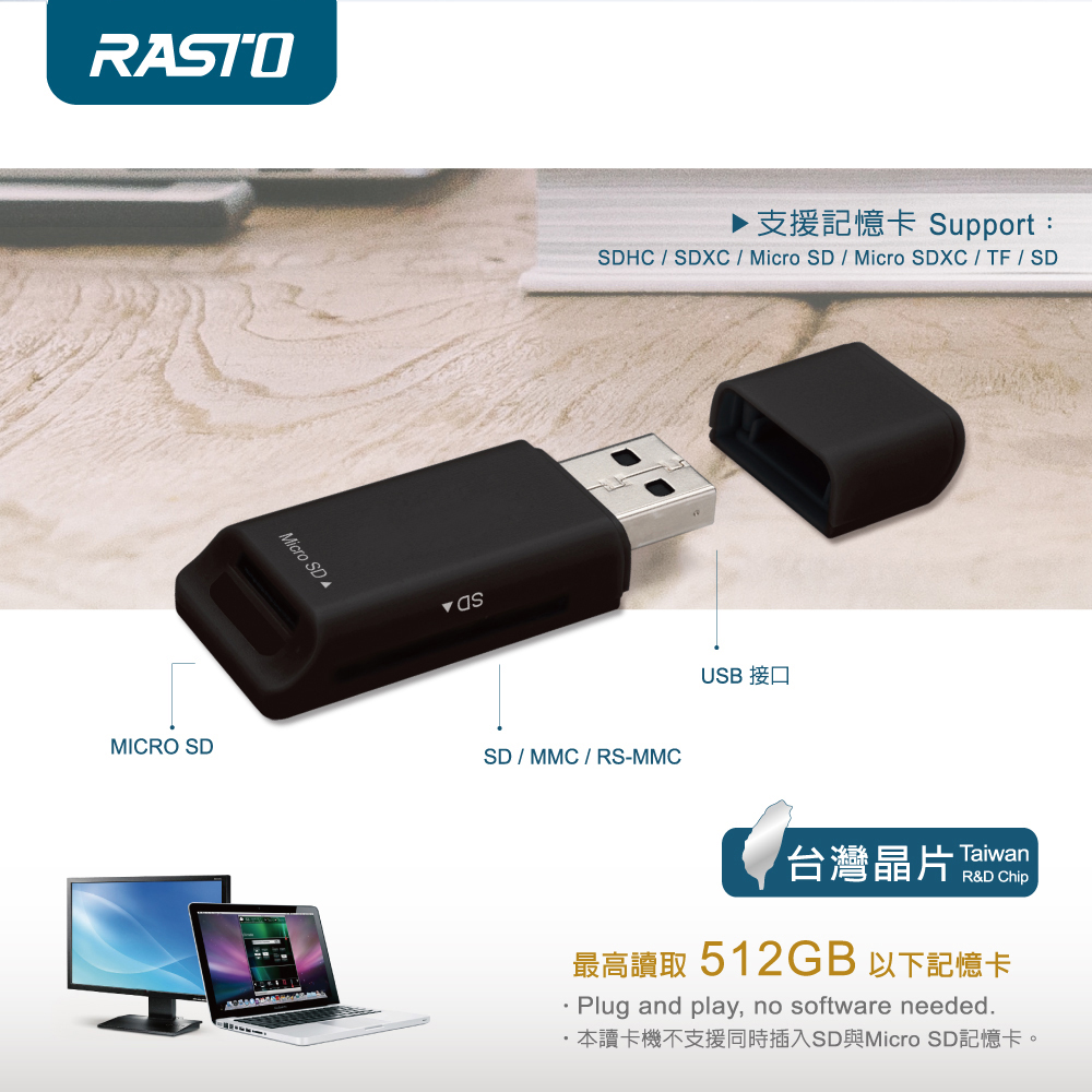 RASTO RT7 隨身型 USB 雙槽讀卡機