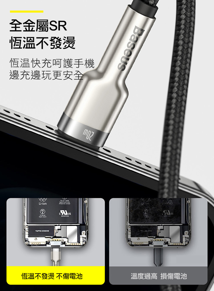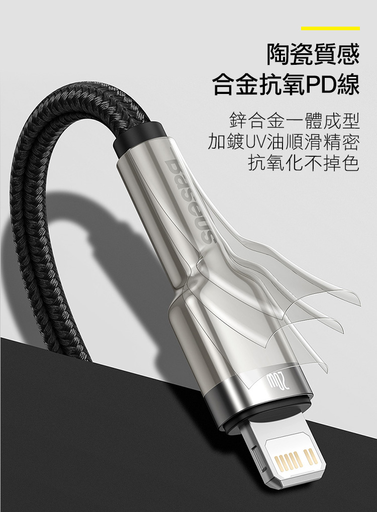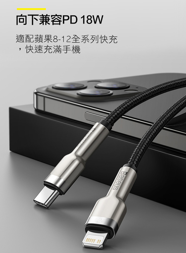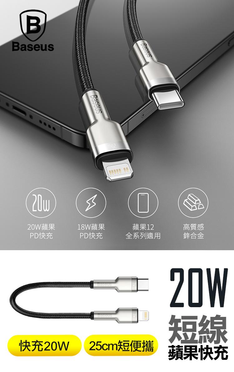 Baseus倍思 金屬卡福樂 TypeC to Lightning PD閃充傳輸充電線20W-25cmPD快充短線