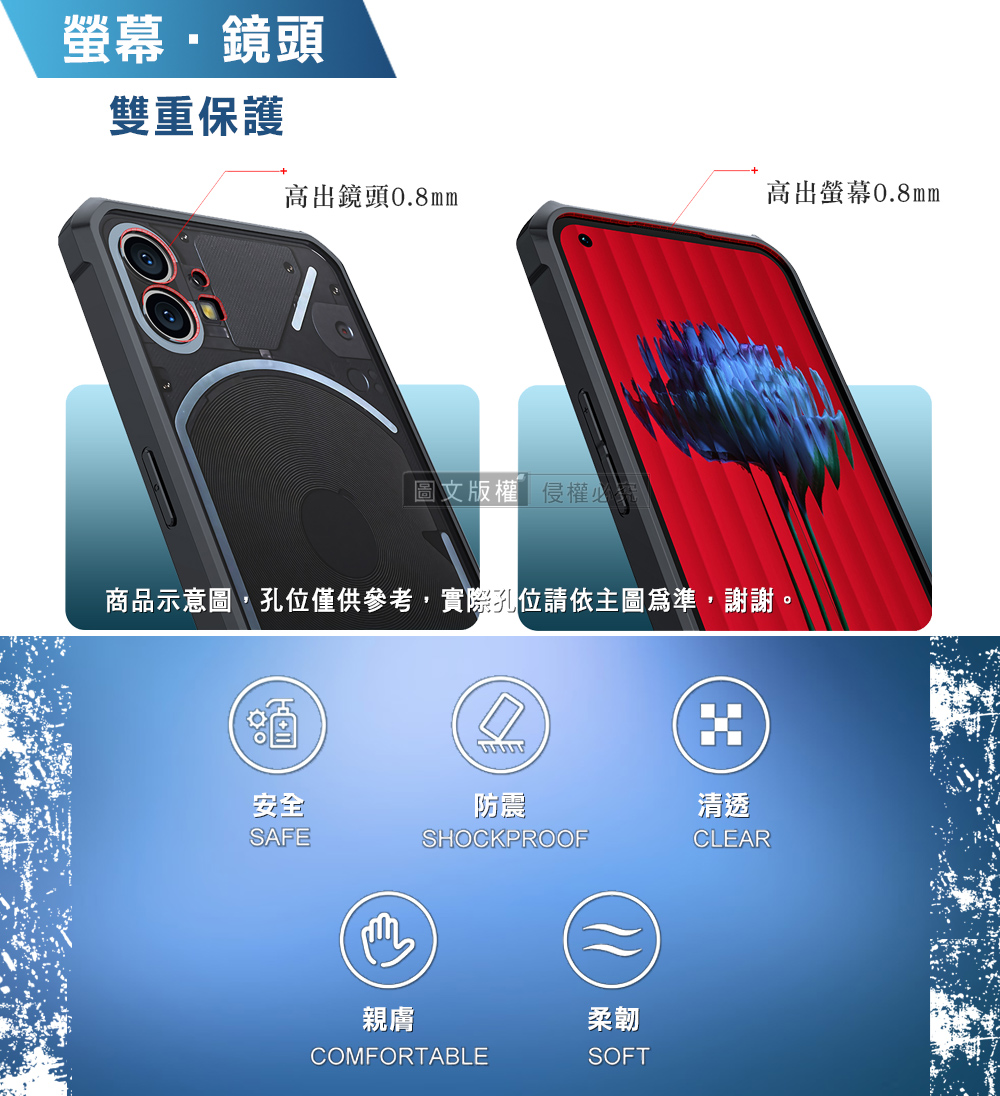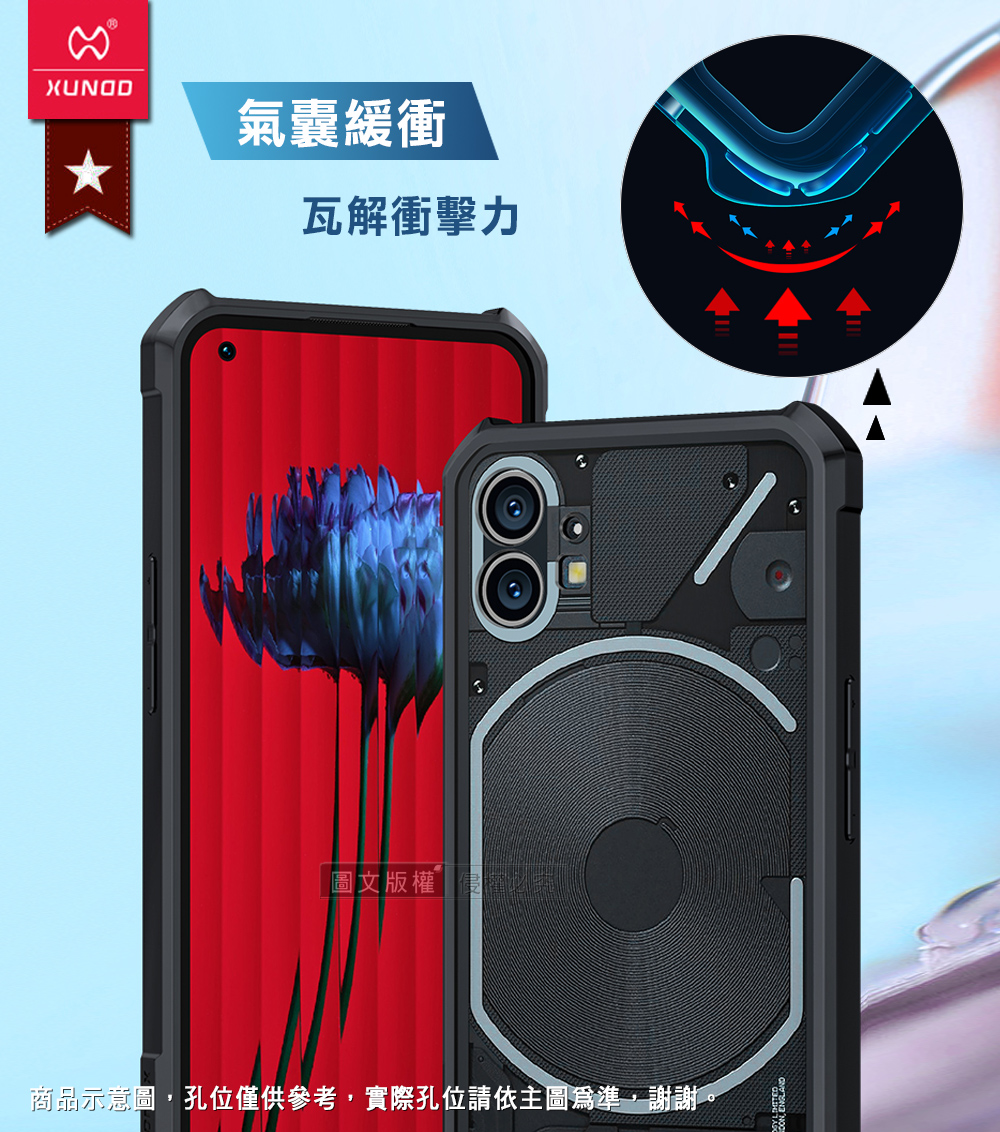 XUNDD訊迪 軍事防摔 Nothing Phone (1) 鏡頭全包覆 清透保護殼 手機殼(夜幕黑)