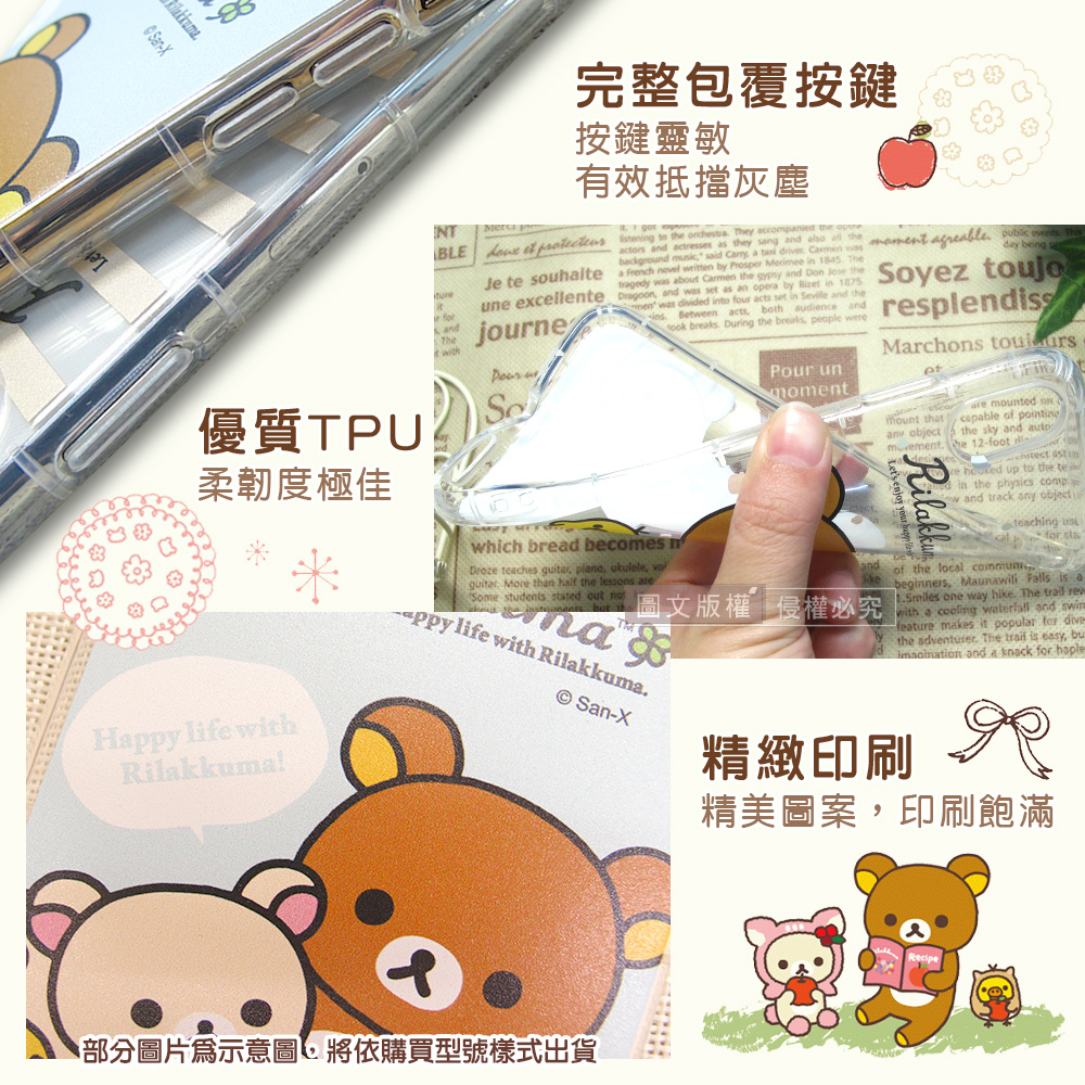 超可愛拉拉熊萌翻登場 SAN-X官方正版授權 可愛大集合 空壓氣墊保護設計,有效減緩摔落時的衝擊力 印刷精緻飽和,軟式質感殼拆裝好方便