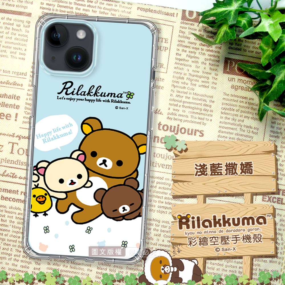 SAN-X授權 拉拉熊 iPhone 14 6.1吋 彩繪空壓手機殼(淺藍撒嬌)