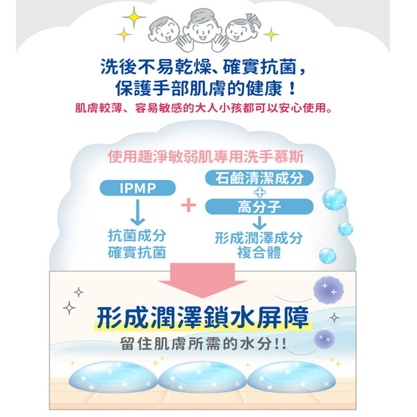 日本獅王趣淨敏弱肌專用洗手慕斯450ml*3瓶