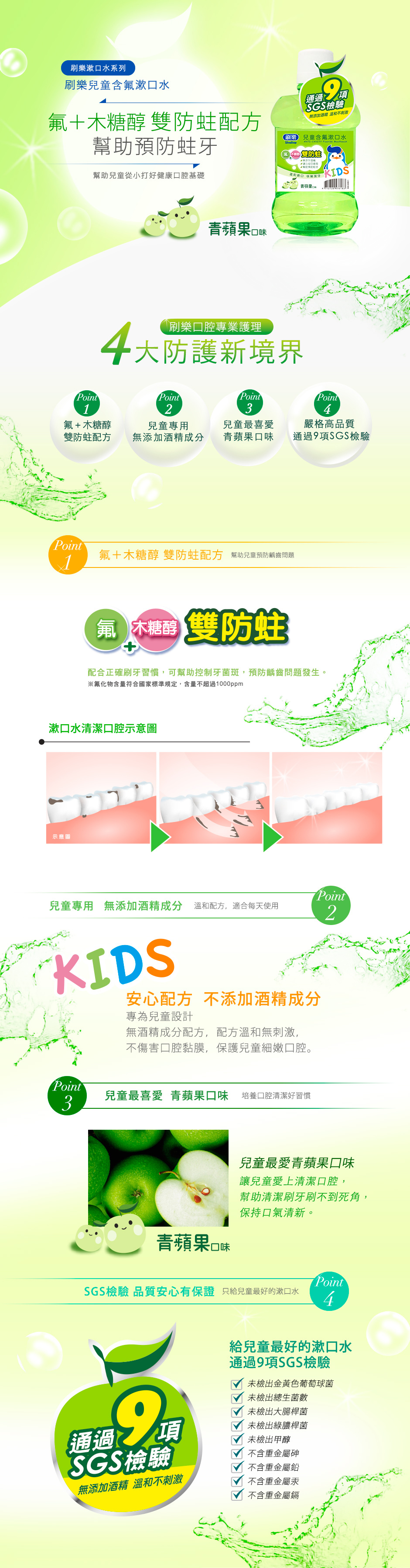 刷樂 兒童含氟漱口水500ml-青蘋果*6瓶
