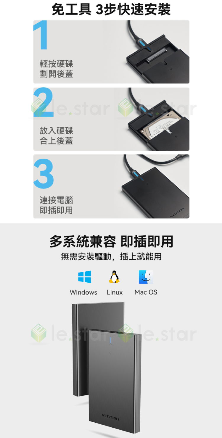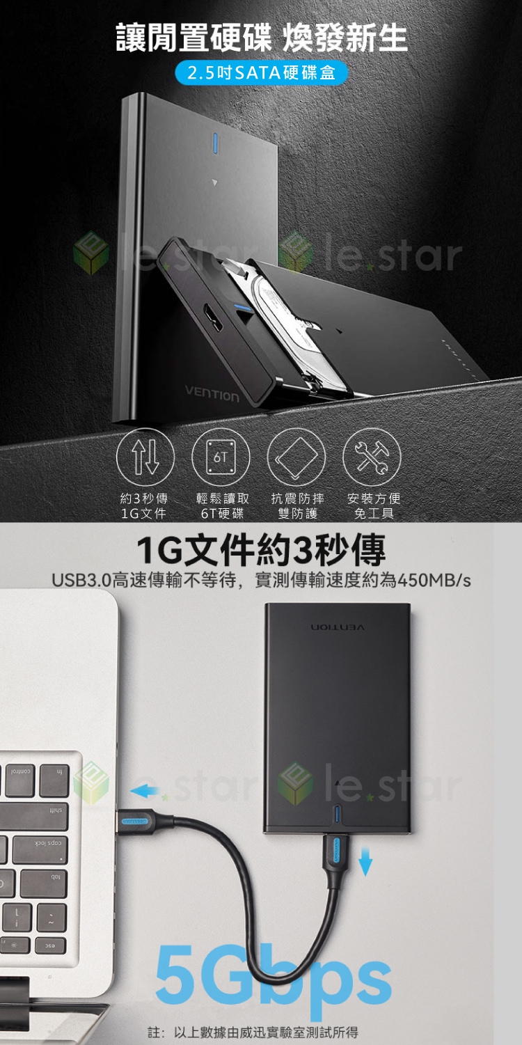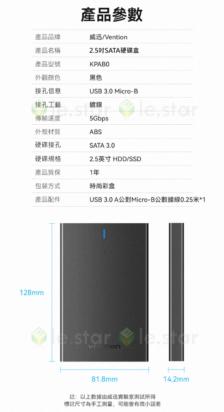 VENTION 威迅 KPA系列 HDD/SSD 2.5吋SATA鋁合金硬碟盒-USB3.0 Micro-B