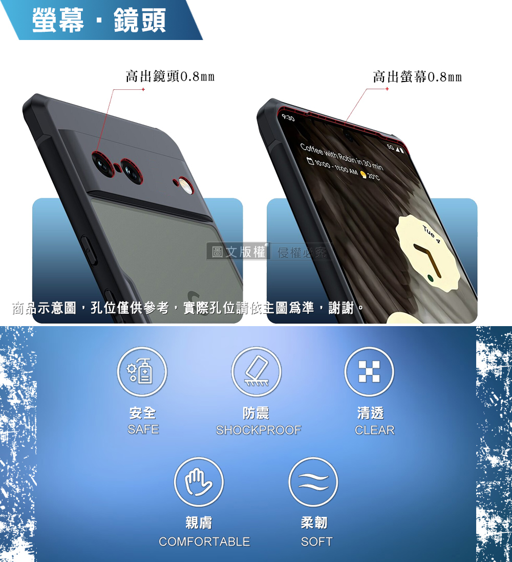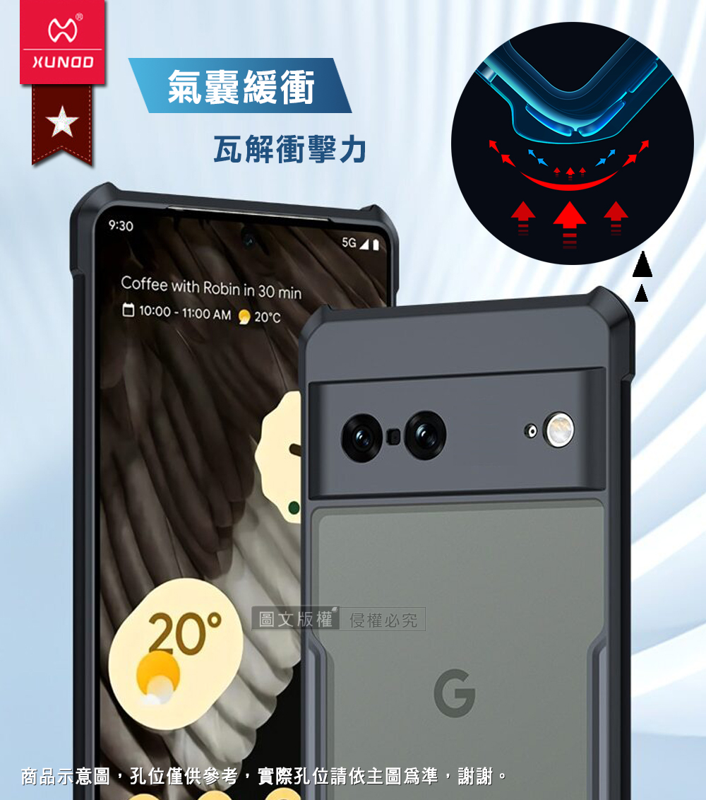 XUNDD訊迪 軍事防摔 Google Pixel 7 鏡頭全包覆 清透保護殼 手機殼(夜幕黑)