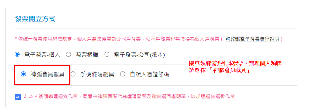 ※車輛一經領牌,恕無法退回更換!發票內容也無法修改。