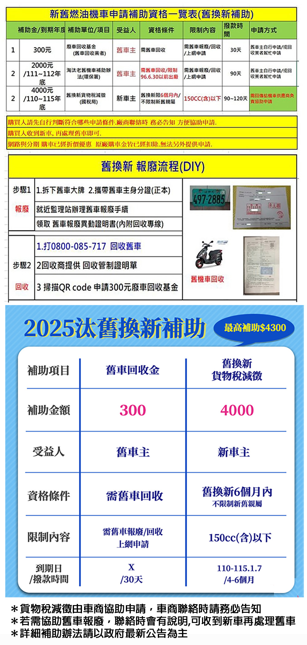 如有舊車報廢汰換還可適用政府獎勵舊換新減徵貨物稅補助4000元條例.