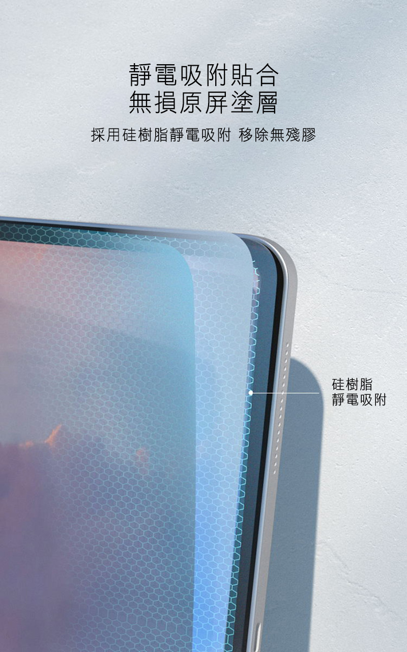 .採用矽樹脂靜電吸附,不損傷原螢幕AR塗層
