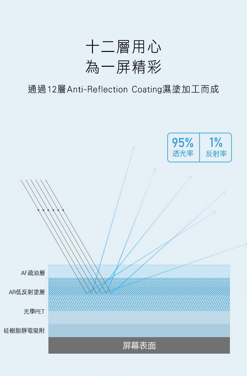 .淨系列抗反射膜,採用抗反射塗層(Anti-Reflection Coating, ARC)工藝