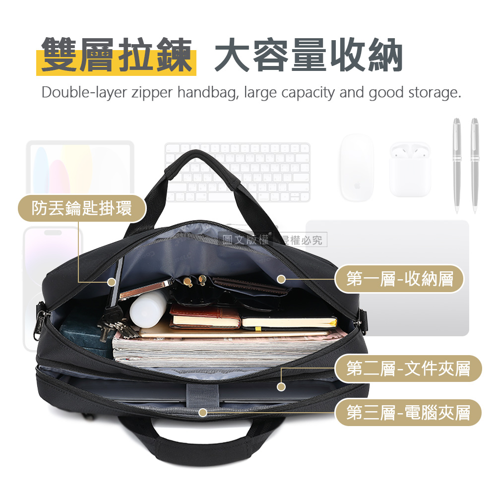 15.6吋 商務洽公/業務款 大容量雙拉鍊 手提肩背平板筆電防震側背包