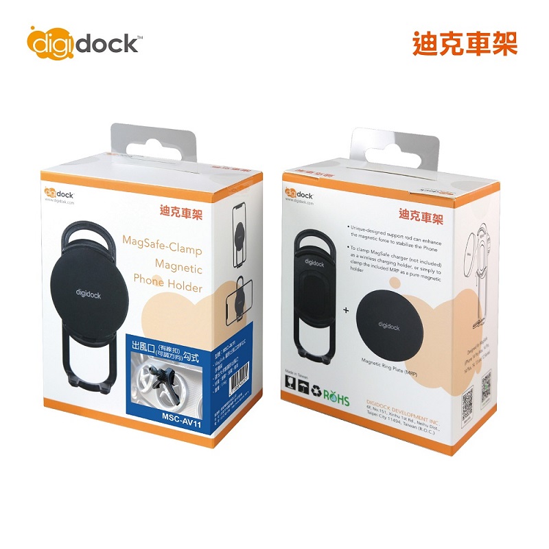 【digidock】迪克車架 MagSafe 圓形出風口專用勾式 磁吸手機架 冷氣出風口夾/汽車/支架 固定架 導航 GPS(MSC-AV11)