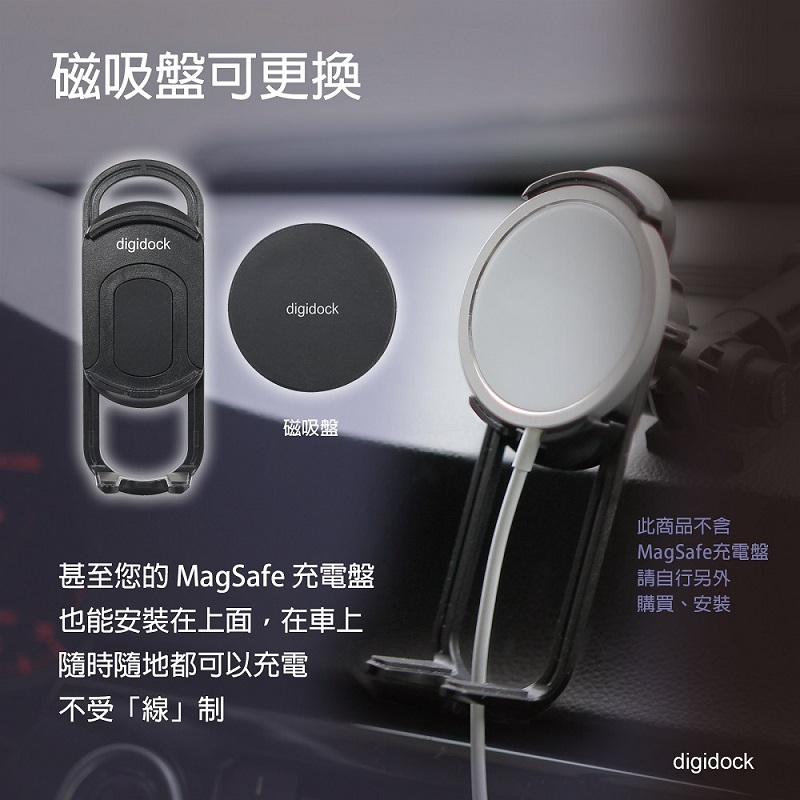 【digidock】迪克車架 MagSafe 出風口旋轉勾式 磁吸手機架 冷氣出風口夾/汽車/支架 固定架 導航 GPS(MSC-AV05)