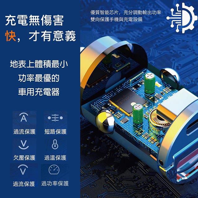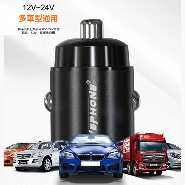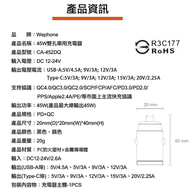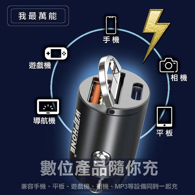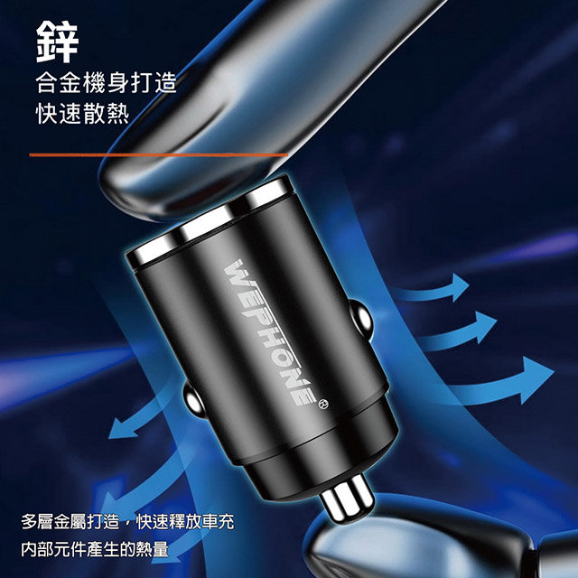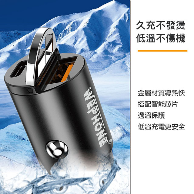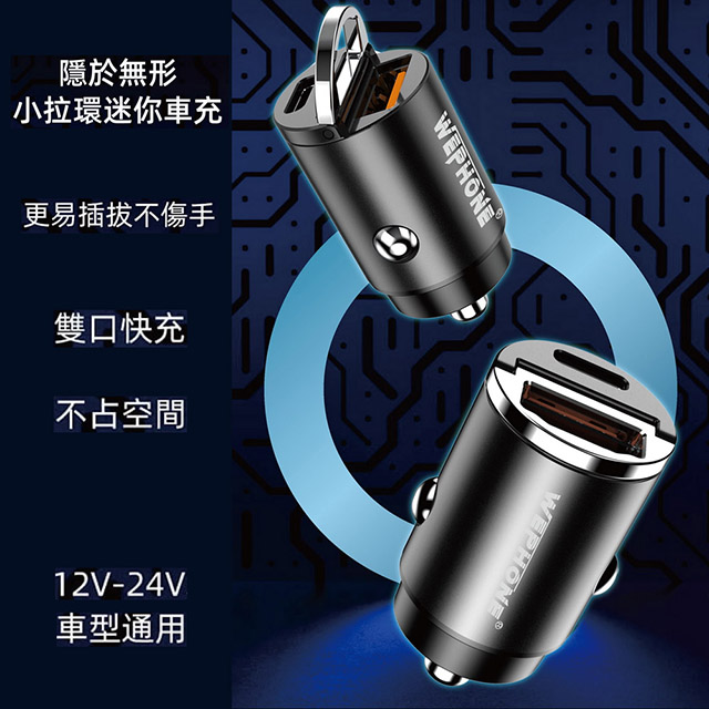 Wephone 極速45W雙孔PD+QC 迷你拉環車充/車用充電器(Type-C/USB-A)