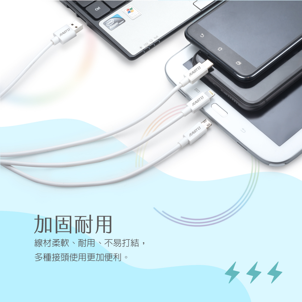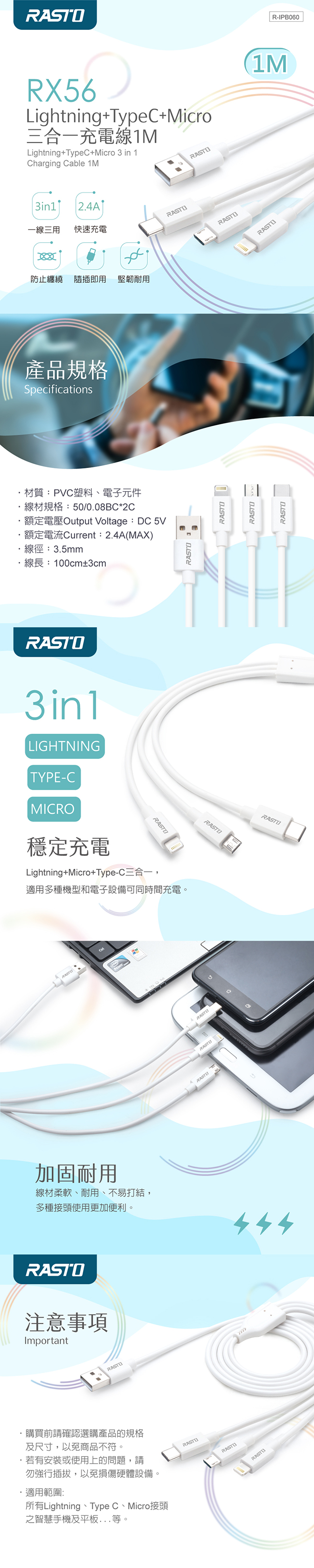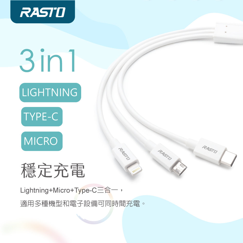 RASTO RX56 Lightning+TypeC+Micro三合一充電線1M