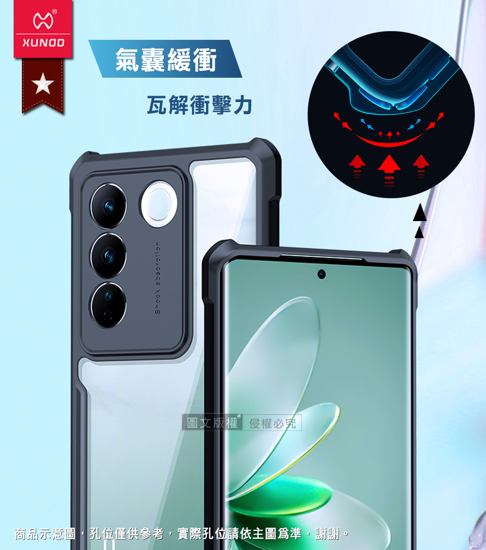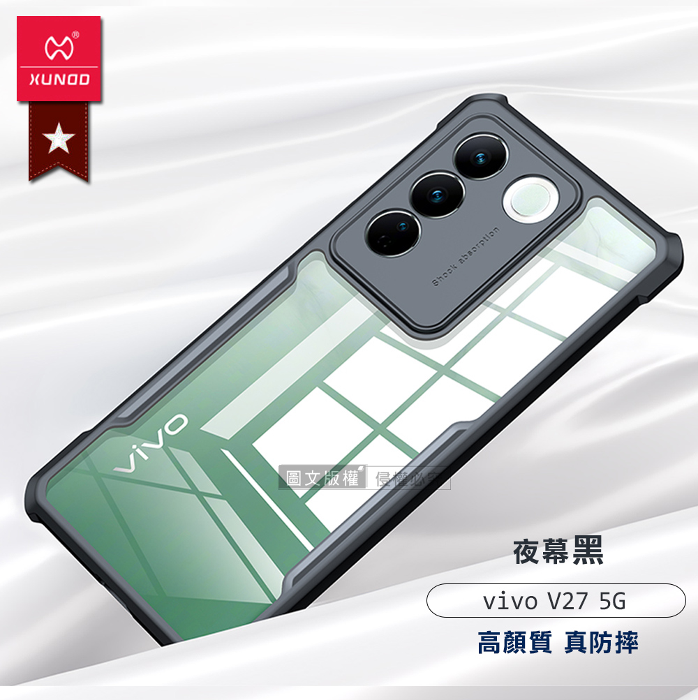 XUNDD訊迪 軍事防摔 vivo V27 5G 鏡頭全包覆 清透保護殼 手機殼(夜幕黑)