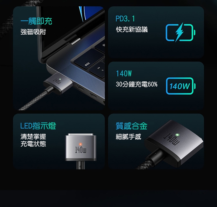內容物:140W USB-C to MagSafe3 磁吸充電線