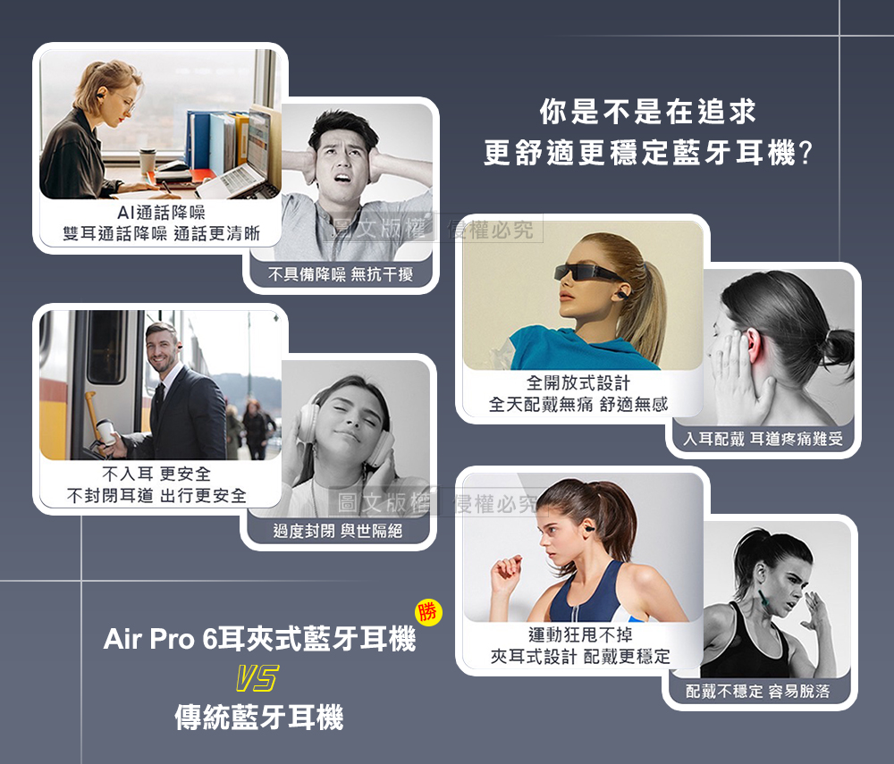 DA Air Pro 6 V5.2耳夾式藍牙耳機 HiFi高音質/智能降噪 運動型耳機