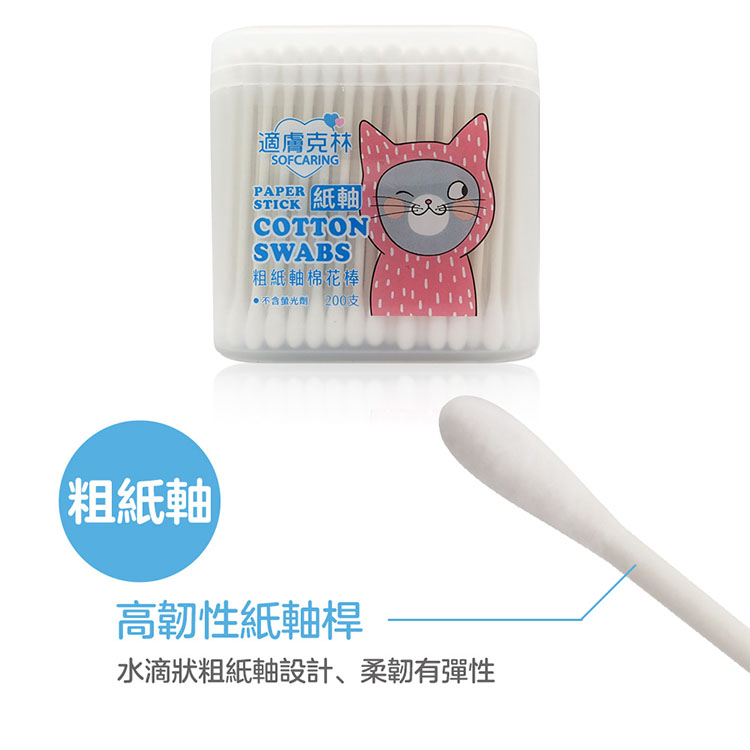 適膚克林 粗紙軸棉花棒 200支*12盒