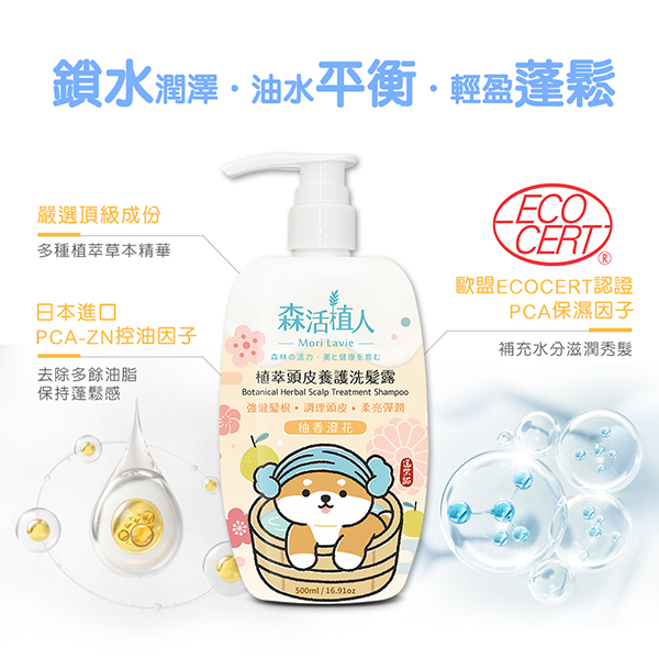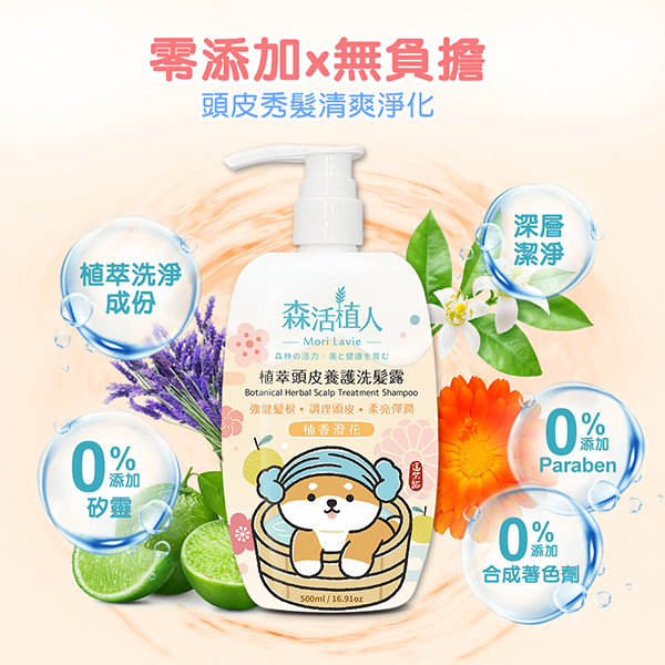 森活植人逗柴貓 植萃頭皮養護洗髮露 柚香橙花500ml*2瓶