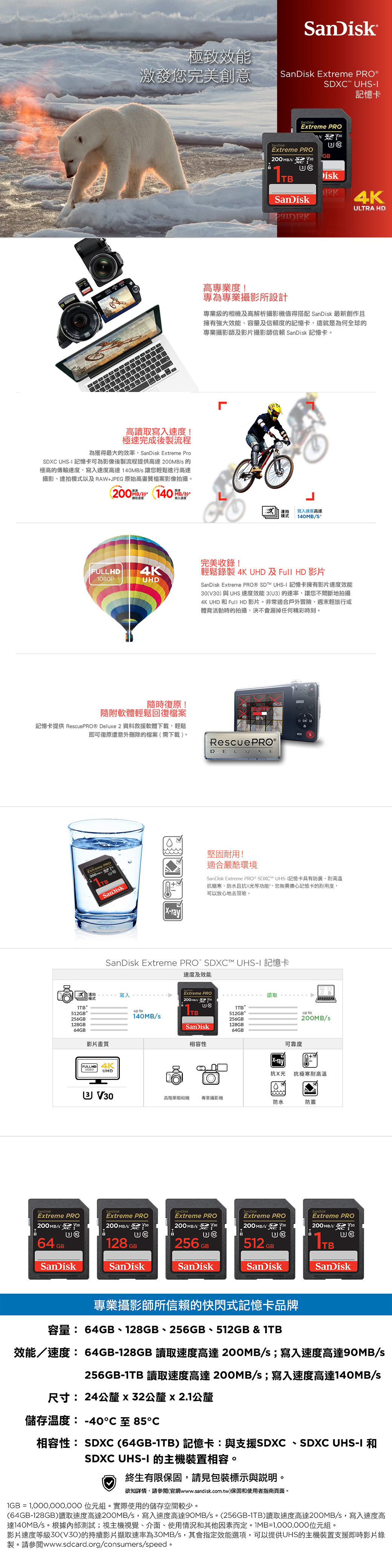 【SanDisk】Extreme Pro 256GB SDXC UHS-I V30 記憶卡(讀取達200MB)