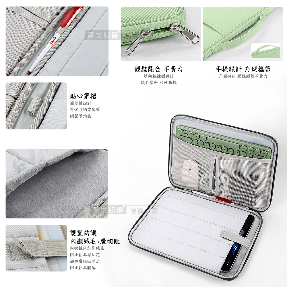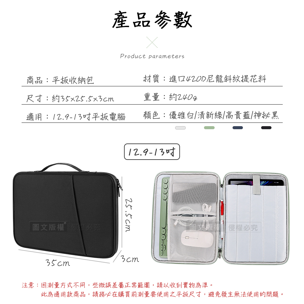 12.9/13吋 便攜生活 通用型平板內膽包 防潑水防刮磨收納手提包(高貴藍)