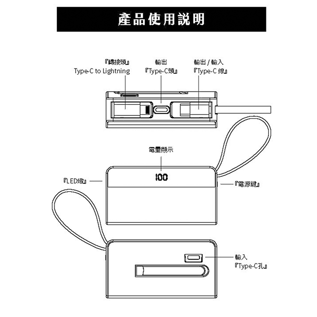 ◎ 二輸出(Lightning+TypeC線)、二輸入(TypeC孔+TypeC線)