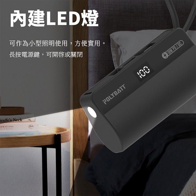 【台灣製造】液晶顯示18W快充 直插式口袋行動電源(蘋果、安卓皆可用)