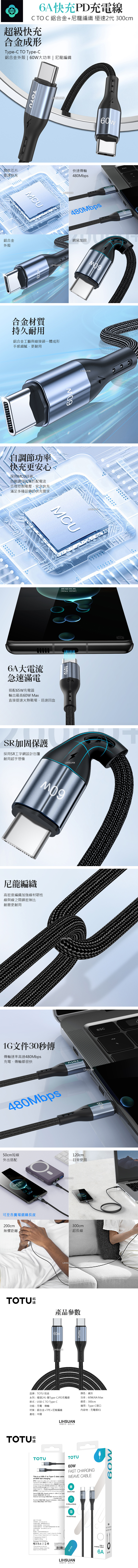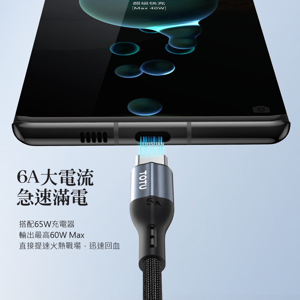 TOTU台灣官方 雙Type-C/PD充電線傳輸線編織快充線閃充線 QC4.0 極速2代 3M 拓途