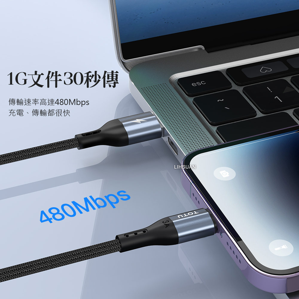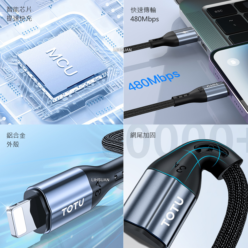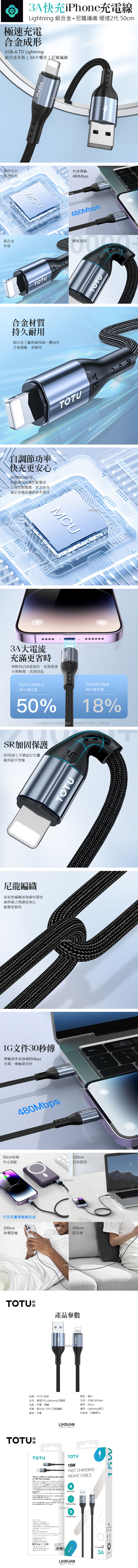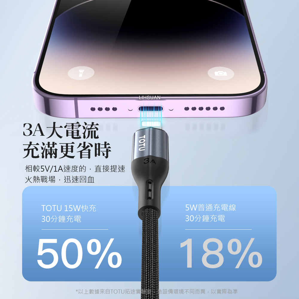 TOTU台灣官方 Lightning/iPhone充電線傳輸線編織快充線 極速2代 50cm 拓途
