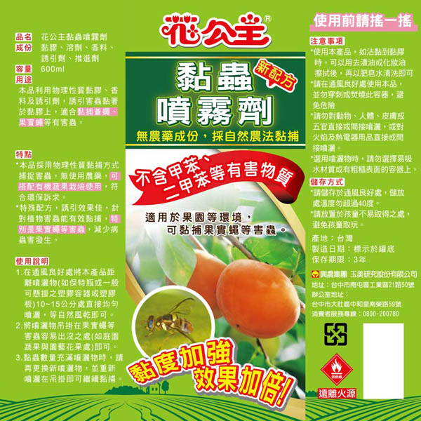 ※ 採用物理性質黏膠、香料及誘引劑,誘引害蟲黏著於黏膠上,適合黏捕蒼蠅、果實蠅等害蟲。