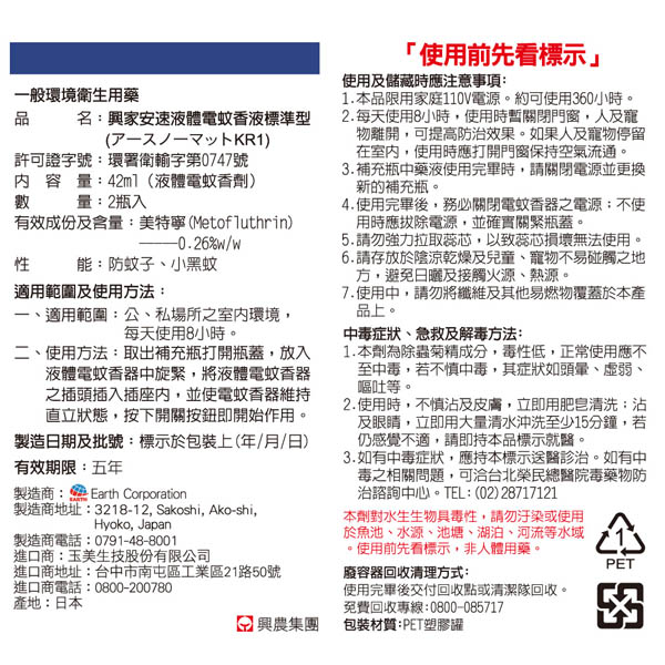 興家安速液體電蚊香液標準型