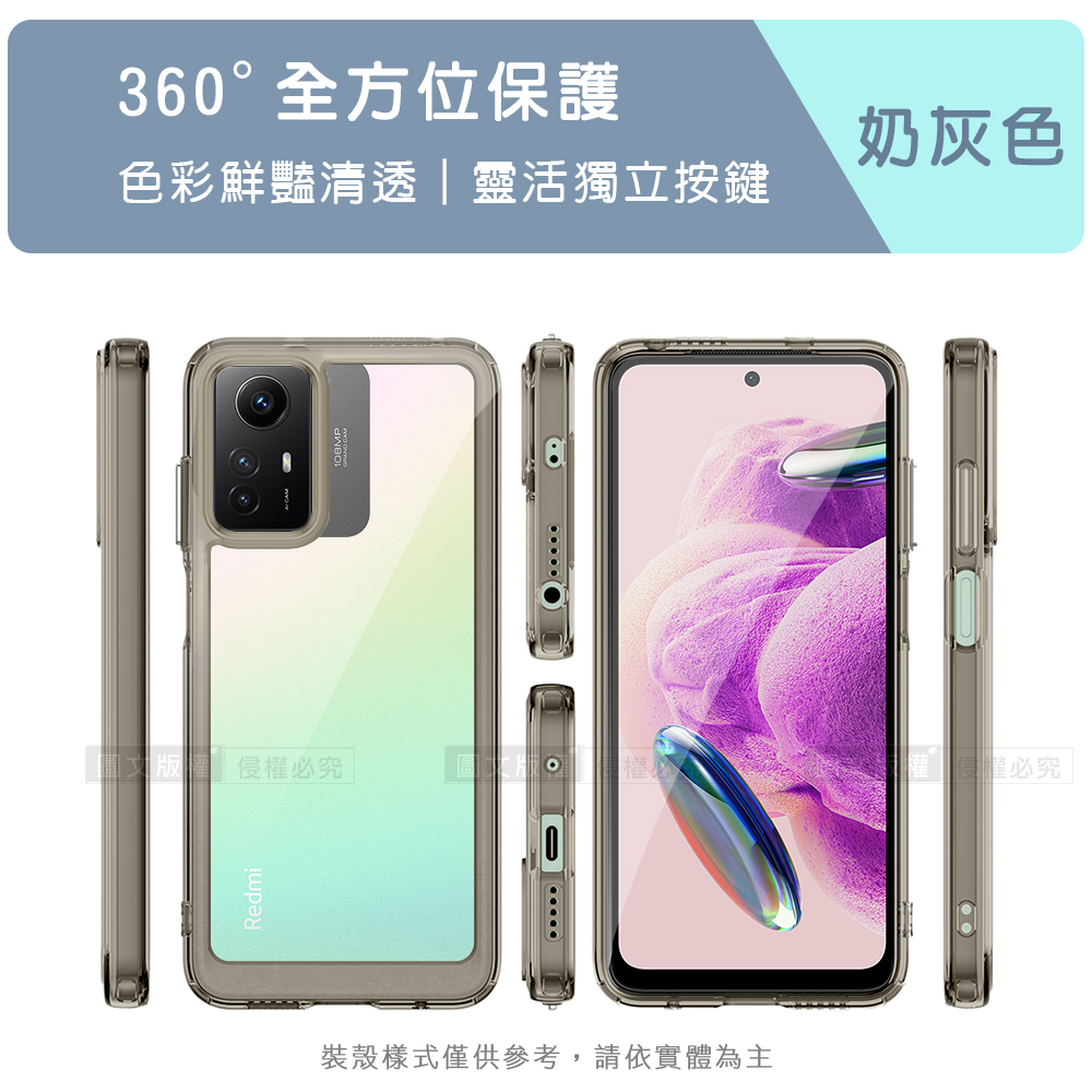 晶透炫彩 紅米 Note 12S 四角氣囊防摔保護 軍規軟邊手機殼(奶灰色)