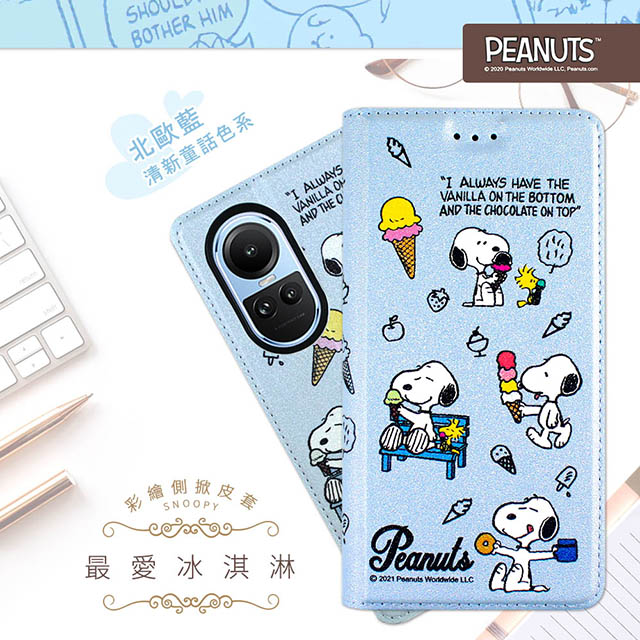 【SNOOPY/史努比】OPPO Reno10 / OPPO Reno10 Pro 共用 彩繪可站立皮套(最愛冰淇淋)