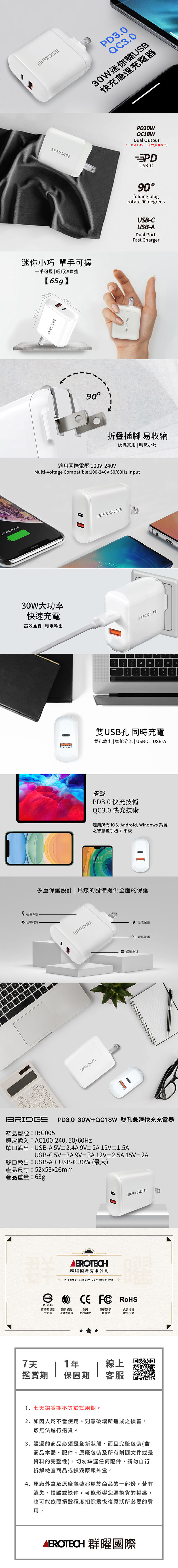 iBRIDGE PD3.0 30W+QC3.0 18W 雙孔急速快充充電器