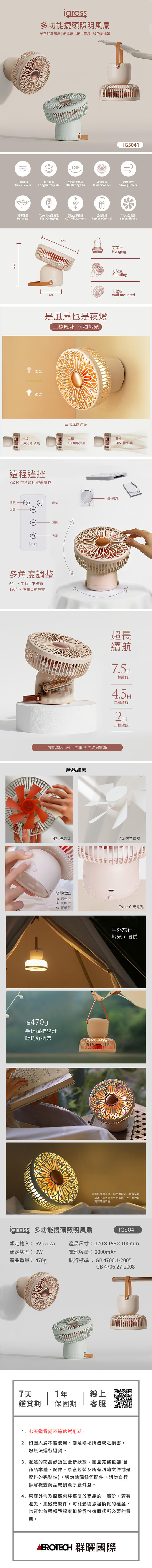 igrass 多功能擺頭照明風扇-山嵐綠