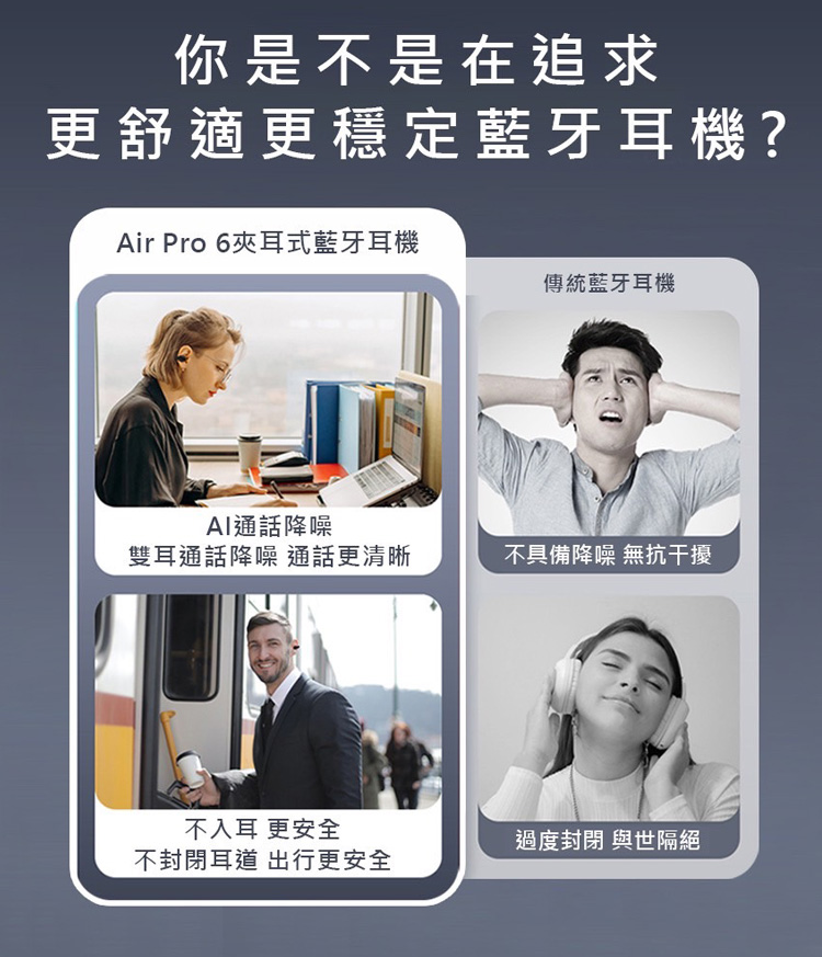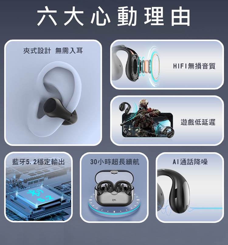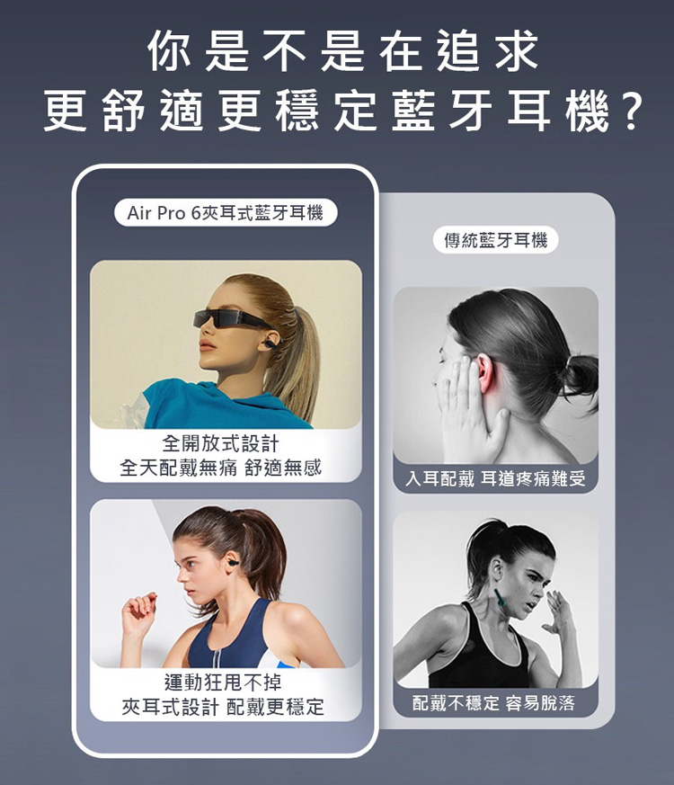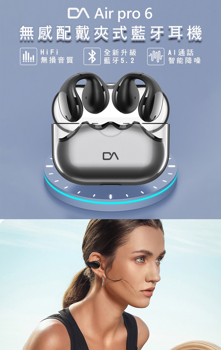 DA Air Pro6 夾式耳機 骨傳導 運動耳機 無線藍牙耳機 不入耳 夾式運動耳機 降噪 耳夾式