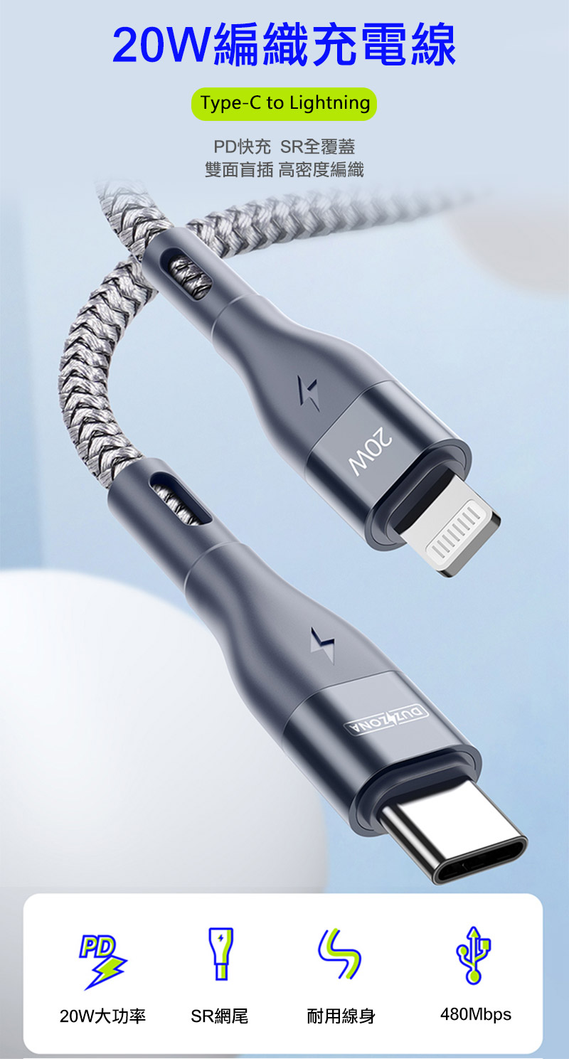 DUZZONA A1 Type-C to Lightning 編織充電線(PD20W)(2M)
