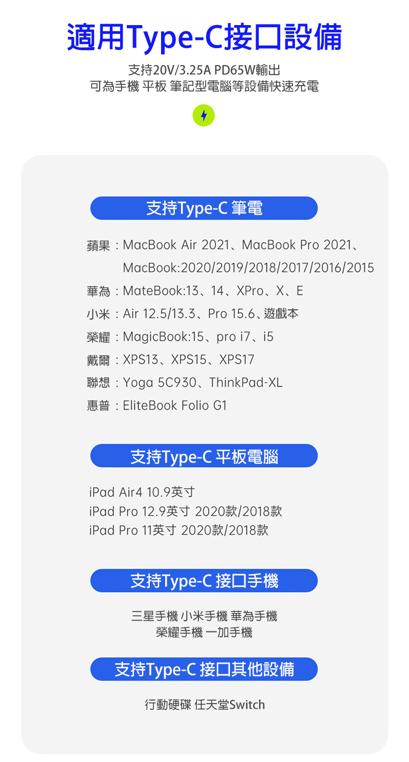 .支援各品牌快充,可充手機/平板/筆電(MacBook)