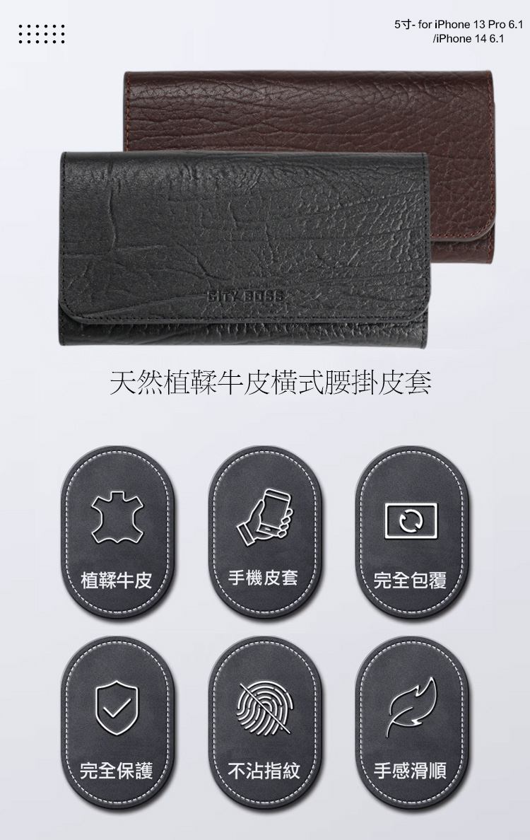 CITY成熟穩重風 5吋頂級天然植鞣 牛皮腰掛皮套手機腰掛皮套