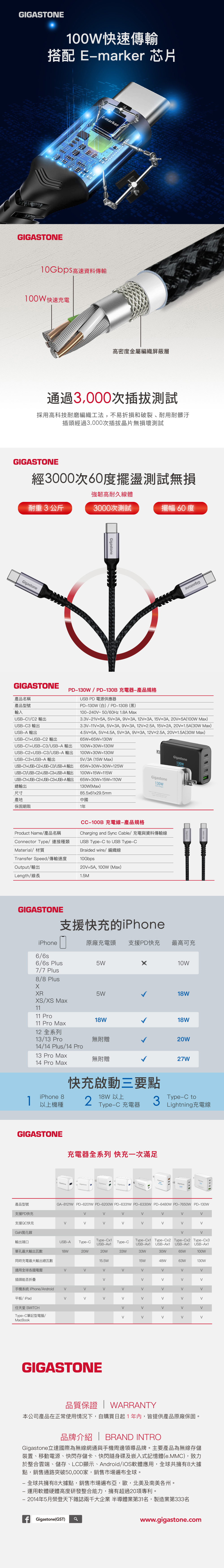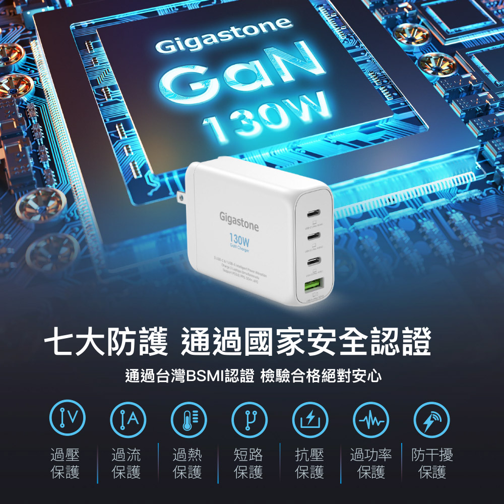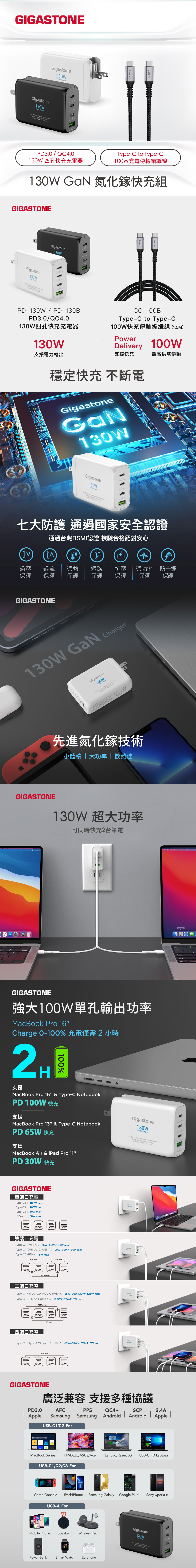 【Gigastone】130W GaN 氮化鎵四孔充電器 + C to C 100W快充傳輸線 快充組(PD-130)_黑色