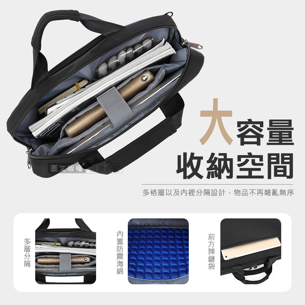 14.4吋 城市行者 商務氣囊抗震手提電腦包 大容量防潑水 肩背休閒筆電包(海軍深藍)