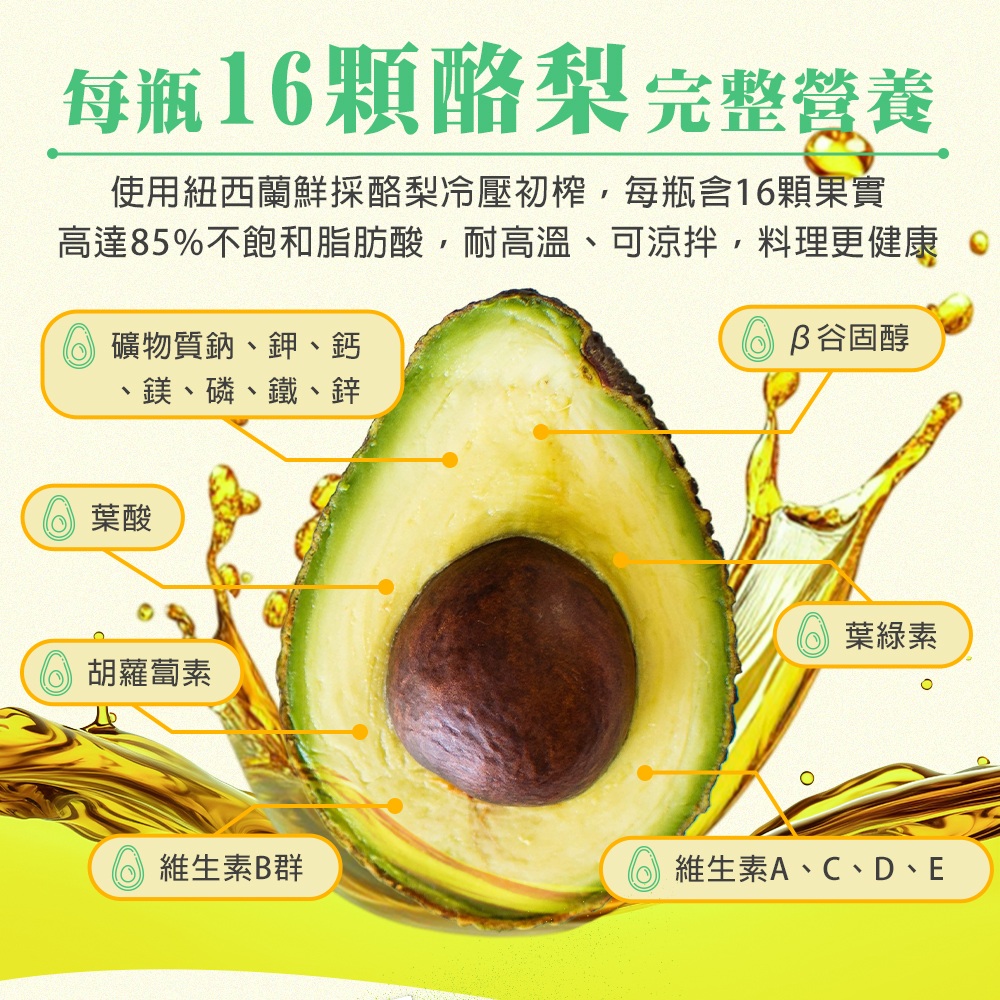 每瓶有16顆酪梨完整營養