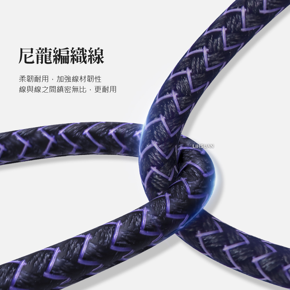 ●尼龍編織柔韌耐用,加強線材韌性,線與線之間縝密無比