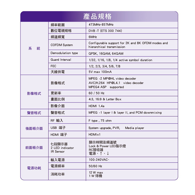 大通高畫質數位電視接收機(不含天線)HD-8000