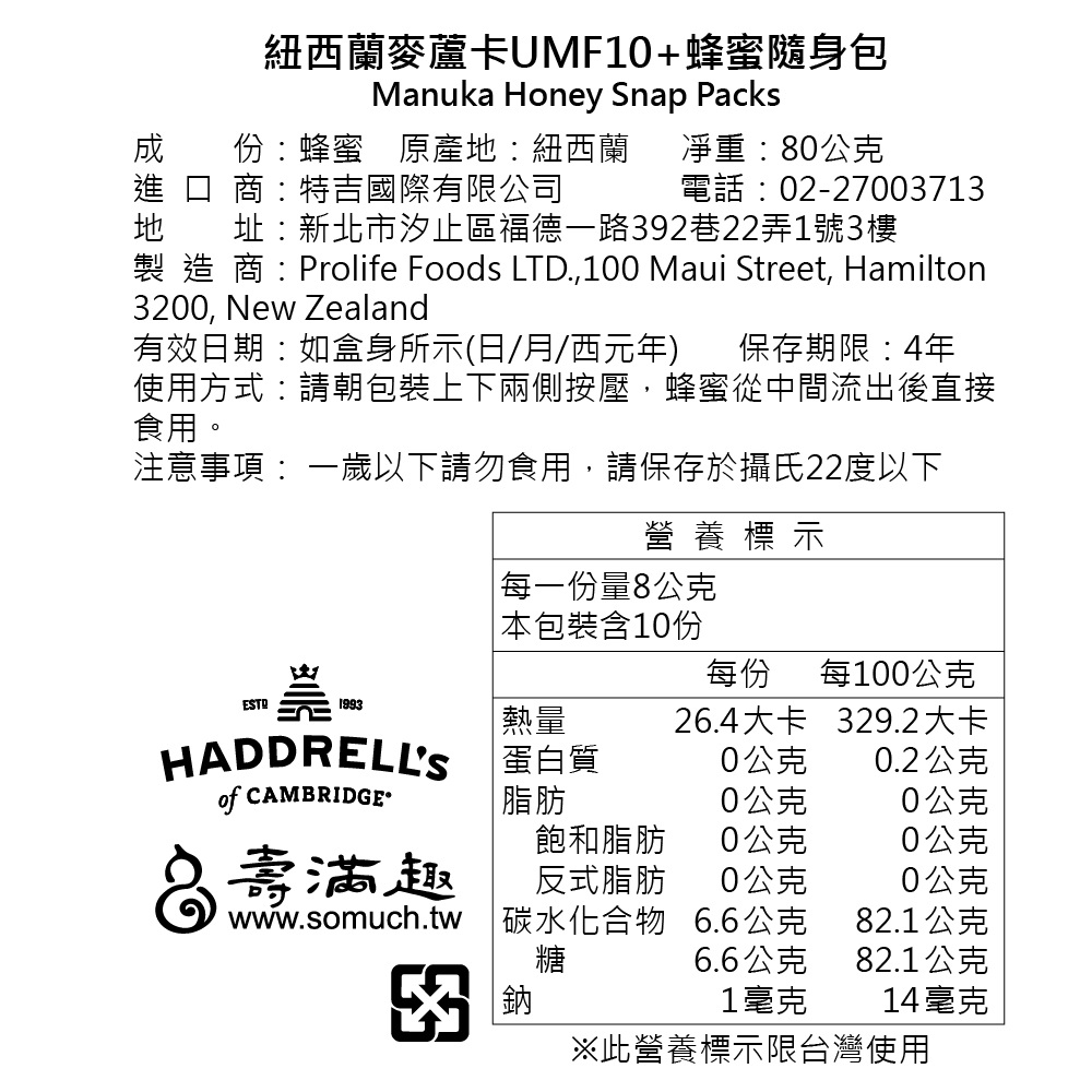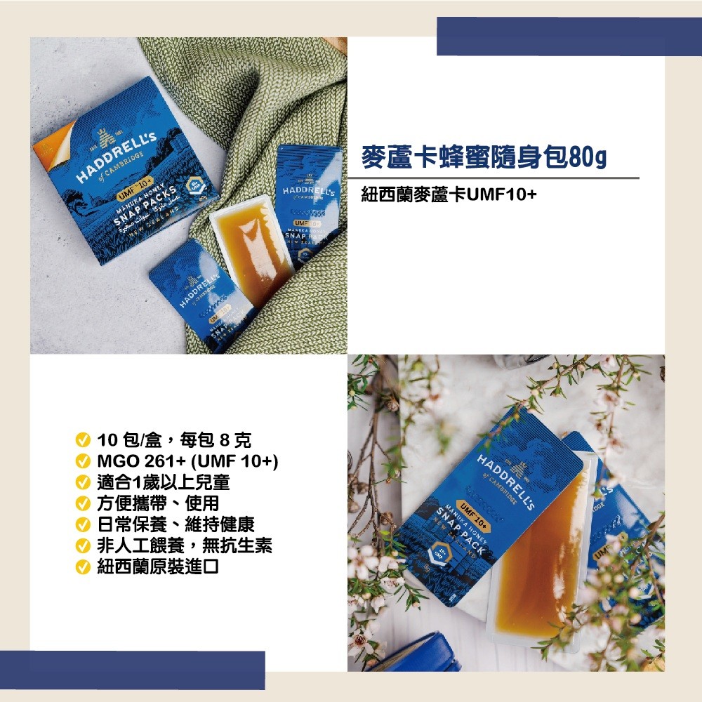 【壽滿趣-Haddrells】紐西蘭活性麥蘆卡蜂蜜隨身包UMF10+(80g)