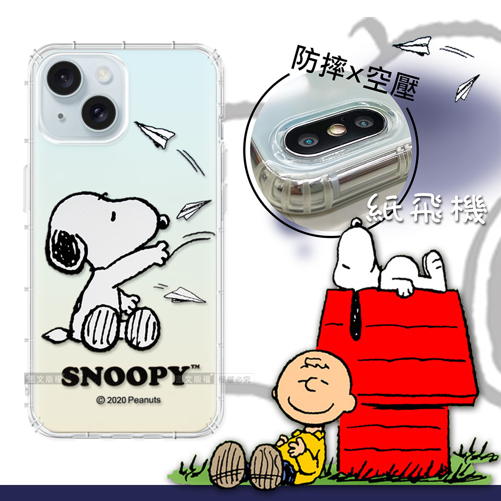 史努比/SNOOPY 正版授權 iPhone 15 6.1吋 漸層彩繪空壓手機殼(紙飛機)