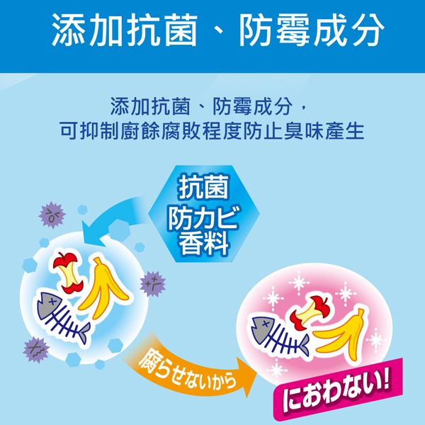 金鳥研發的抗菌、防霉成分,可抑制廚餘腐敗程度防止臭味產生