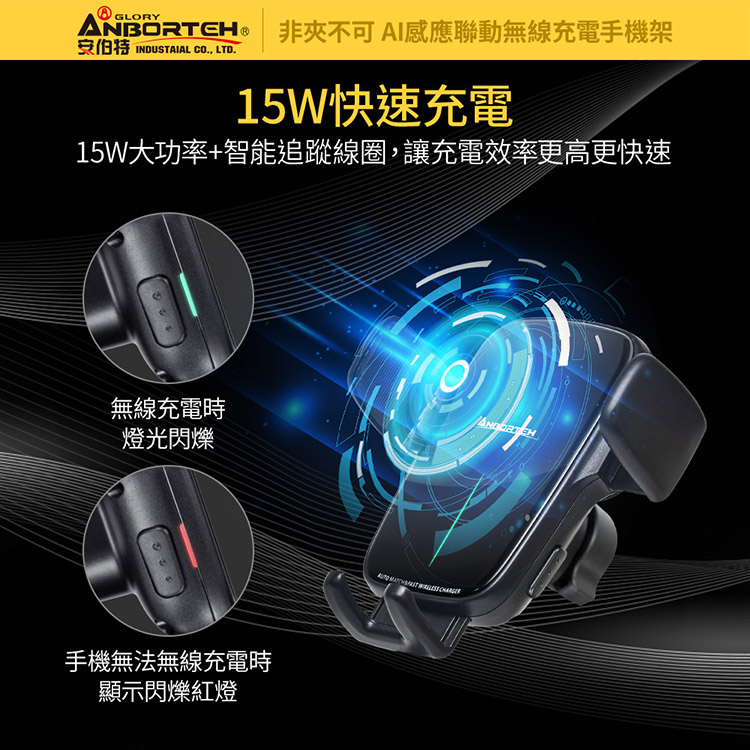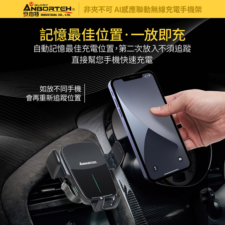 【安伯特】AI感應聯動無線充電手機架-旋鈕CD口