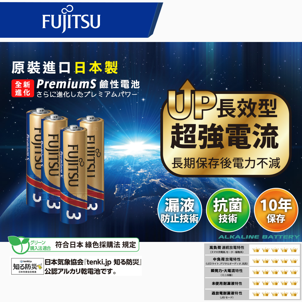 日本製 Fujitsu富士通 Premium S全新進化 3號AA長效超強電流鹼性電池(精裝版8顆裝)