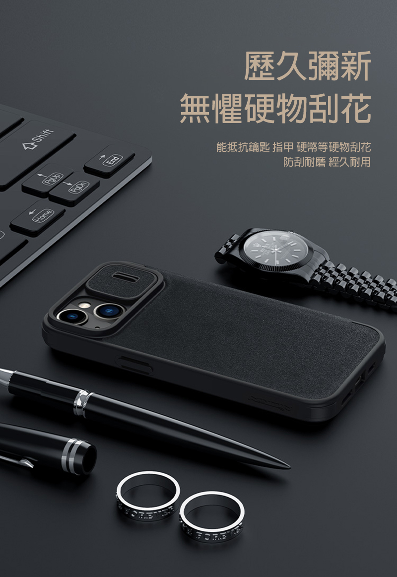 NILLKIN Apple iPhone 15 秦系列 Pro 皮套(素皮/布紋款)(淺黛青)